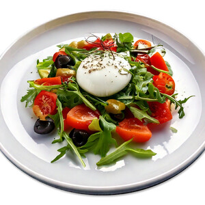 Misticanza, pomodoro, mozzarella, acciughe e olive