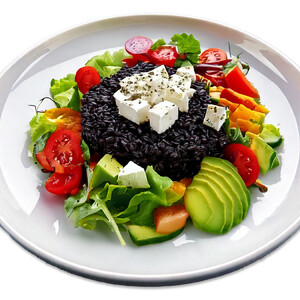 riso venere feta greca cetrioli insalata avocado pomodoro